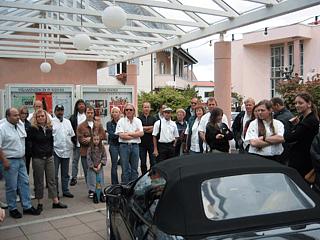 Nach einer kurzen Regenpause wurde aber auch der Cocktailempfang im Kurpark von Schömberg von einem längerem Schauer begleitet und mußte so im Kurhaus stattfinden. Doch zum Gruppenfoto hatte Petrus ein Einsehen und das Foto mit allen Teilnehmern konnte auf der Kurparkbühne geschossen werden.