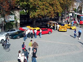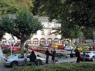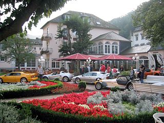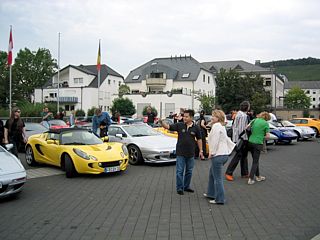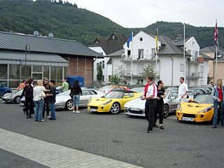Um 9:00 Uhr stand dann der Pressetermin im Schloßhof von Bad Bertrich auf dem Programm. Hier wurden die Lotus-Fahrzeuge der Presse und den bereits seit Freitag neugierig gewordenen Kurgästen präsentiert.