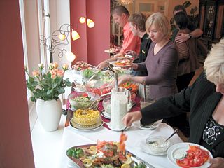Nach der Rückkehr blieb den Clubmitgliedern noch Zeit, eine Regenerationspause einzulegen, bevor sie gegen 18:00 Uhr im Hotel "Quellenhof" das gemeinsame Abendessen im Buffetform erwartete.