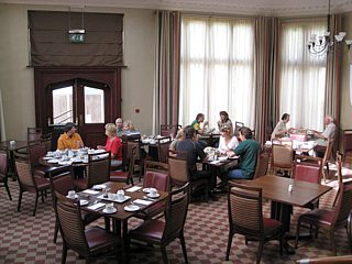 Ab 07:30 Uhr gab es das langersehnte und viel diskutierte gemeinsame Frühstück, traditionell englisch, im Frühstücksraum des Hotels "Dunston Hall".