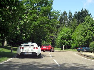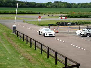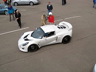 Nach der Werksbesichtigung war es nun endlich an der Zeit, das Geheimnis um die angekündigte Überraschung zu lüften. Jeder Teilnehmer bekam die Möglickeit, mit einer Elise oder Exige Modelljahr 2010 und einem Lotus-Werksfahrer zwei Runden auf der Teststrecke zu drehen.