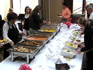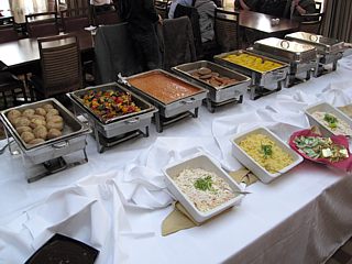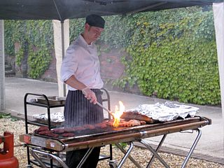 Gegen 19:30 Uhr begann das gemeinsame Abendessen mit dem Barbecue und landestypischen Spezialitäten wie Burgern, Hähnchenschenkeln und Grillwürstchen, sowie einem Salatbuffet.