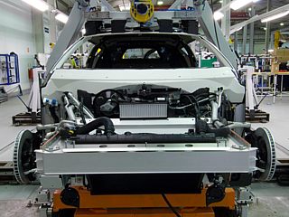 Im Lotus - Werk wurden die Clubmitglieder in drei Gruppen aufgeteilt und zeitversetzt konnte dann die Führung beginnen. Es wurde auf sehr ausführliche und fachlich kompetente Weise der komplette Fertigungsablauf der Fahrzeugtypen Elise, Exige, des Tesla und des neuen Evora aufgezeigt.