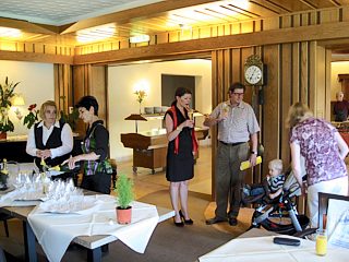 Die individuelle Anreise der Teilnehmer erfolgte bis 18:30 Uhr. Doch aufgrund der vielen Baustellen auf der A5 konnten viele der Clubmitglieder staubedingt nicht pünktlich anreisen. Und so fand der Sektempfang um 19:00 Uhr in einem überschaubaren Rahmen statt.