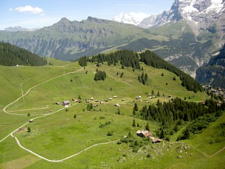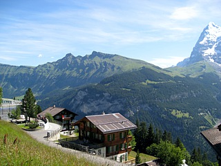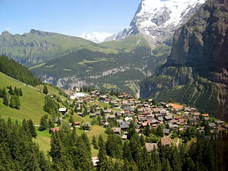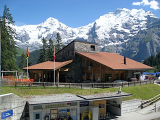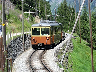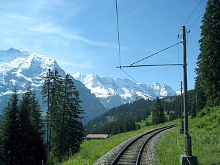 Von Gütschalp (1487m) fuhr man mit einer Schmalspurbahn der Spurweite 1000 mm auf einer rund 4 km langen Strecke nach Mürren (1634m). Mürren ist ein autofreies, traditionelles Walser-Bergdorf, von dem aus man eine gute Aussicht auf Eiger, Mönch und Jungfrau hat.