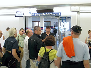 Wohlgestärkt konnte nun der Start des Tagesprogramms, dem Besuch des Panoramarestaurants "Piz Gloria" und der "Bond World 007" auf dem Schilthorn, beginnen. Gemeinsam fuhr man gegen 09:30 Uhr nach Lauterbrunnen zur Talstation der Schilthornbahn.