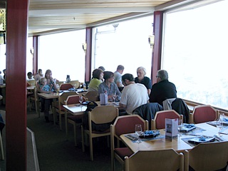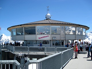 Auf dem Schilthorn angekommen konnten die Clubmitglieder individuell das "Piz Gloria", das sich drehende Panoramarestaurant und seine Räumlichkeiten, in Augenschein nehmen. Im Restaurant waren für die Teilnehmer entsprechend Tische reserviert, auf denen für jeden ein kleines Geschenk aus dem "Bond World 007" Souvenirshop wartete.