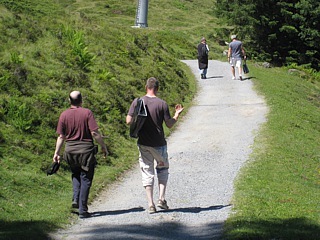Als nächstes stand das Mittagessen bzw. der Nachmittagskaffee auf dem Programm. Hierfür hatten die Organisatoren das Restaurant Winteregg ausgesucht, es liegt auf halber Strecke zwischen Mürren und Grütschalp. Von Mürren aus wurde rund 20 Minuten nach Winteregg gewandert. Alternativ konnte man aber auch mit der Schmalspurbahn nach Winteregg fahren.