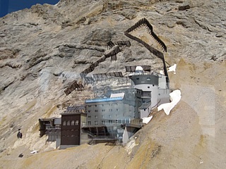 Nach knapp zwei Stunden Aufenthalt war es auch schon wieder Zeit an den Abstieg zudenken. Und so fuhr man mit der Gletscherseilbahn am Schneefernerhaus vorbei zum Zugspitzplatt hinunter. Hier konnten noch die letzten Reste Schnee genoßen werden.