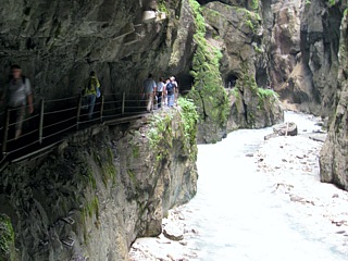 Die Partnach-Klamm mit ihren 700 m Länge bot ein einzigartiges Naturschaupiel. Beeindruckend die Kraft und das wilde Rauschen des Wasser das sich hier unermüdlich seinen Weg durch das Gestein bahnte, aber auch die beklemmende Enge. An vielen Stellen war der Weg und die Stollen nicht höher als 175 cm.