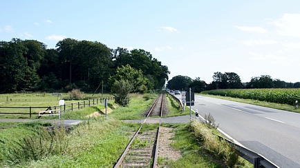 Und mit Volldampf ging es dann Richtung Asendorf, so hätte man beinahe schreiben können. Aber dem war leider nicht so. Statt wie erhofft fuhr man nicht mit einer Dampflok, die wurde für einen Festakt benötigt, sondern mit einer Diesellok, was die Fahrt auf dem offenen Wagen direkt hinter der Lok vielleicht doch angenehmer gestaltete. Wobei die Diesellok auf dem Bergaufstück von Vilsen-Holz nach Heiligenberg auch ordentlich was "wegdampfte".