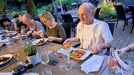 Und wie bei jedem Event kam die Zeit für das letzte Abendessen wieder mal viel zu schnell. Gegen 19:00 Uhr traf man sich bei herrlichem Sommerwetter auf der Terrasse des Hotelrestaurants. Hier war bereits die Tafel für den Lotus-Club-Deutschland wunderschön eingedeckt. Mit einem Aperitif stieß man gemeinsam auf den Abschluss dieses tollen Events an. Im Anschluss bedankte sich der Vorstand bei Iris und Günther für die Planung und Organisation. Und somit konnte nun das Menü beginnen. Seinen Hauptgang durfte jeder Teilnehmer am Morgen beim Frühstück aus dem Menüvorschlag wählen.