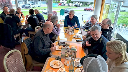 Im Anschluß stand nun die fünfte Etappe und somit die Rückfahrt zum Landhotel "Mühle zu Gersbach" auf dem Programm. Diese gestaltete sich eher individuell. Die einen fuhren zielstrebig zum Hotel, um dort noch ein wenig vor dem Abendessen zu entspannen. Die anderen genossen noch weiterhin ihren Nachmittagscafé. Oder um für den nächsten Tag vorbereitet zu sein, legten einige Teilnehmer noch einen Tank- und Servicestop ein.