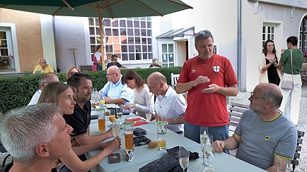 Das Schlossgut Odelzhausen empfing die Gäste bei sommerlichen Temperaturen und herrlichstem Sonnenschein. Es ist also nicht weiter verwunderlich, dass sich die allmählich eintreffenden Event-Teilnehmer auf der urigen Hotelterrasse trafen und je nach Gusto sich bei einem kühlen Bier aus der Hausbrauerei oder einer Tasse Café akklimatisierten.