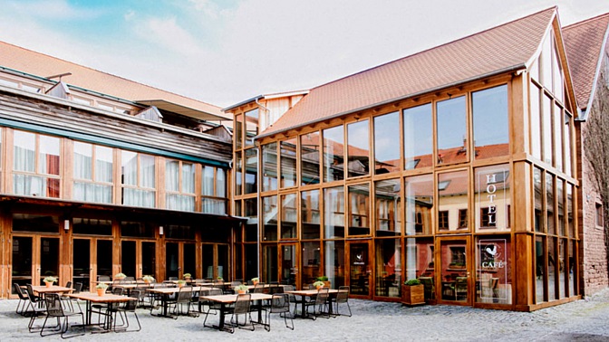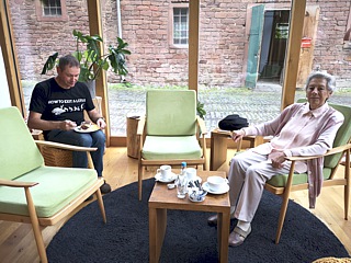 Ausgangspunkt für die geplanten Exkursionen war das Hotel „Gut Hühnerhof“ bei Gründau im Hessischen. Der Anreisetag war zwar bewölkt, aber immerhin noch trocken. In der gemütlichen Sitzecke mit direktem Blick auf die Rezeption, genossen wir den ersten Cappuccino.