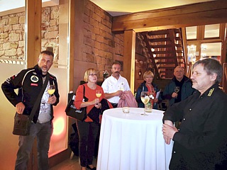 Kurz nach 19:00 Uhr wurde der obligatorische Sektempfang zelebriert und der erste Vorsitzende, Günther Losacker, begrüßte die Teilnehmer. Das Abendessen wurde im „Heckers Restaurant“ eingenommen. Das Restaurant gehört zwar zum weitläufigen Hotel-Komplex, ist aber nur durch einen strammen Fußmarsch oder besser – mit dem Auto zu erreichen. Das schöne Ambiente und das gute Essen entschädigten uns für diese Mühen.