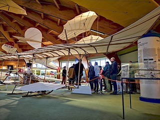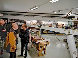 Aber es half nichts. Um 12:00 Uhr erwartete man uns im Deutschen Segelflugmuseum. Eine nette Dame mit fundiertem Fachwissen, brachte uns die ausgestellten Exponate näher. Die 90-minütige Führung verlief äußerst kurzweilig und informativ. Zum krönenden Abschluss hatten wir die außergewöhnliche Gelegenheit, in die Restaurationswerkstatt zu schnuppern. Und das im wahrsten Sinne des Wortes. Die „Wohlgerüche“, welche uns dort umgaben, weckten heftige Erinnerungen an meine Modellbau-Zeit. Die Duft-Mischung aus Holzleim, Polyester und weiteren Materialien ist unvergleichlich. Man war gerade dabei das Segelflugzeug „DFS-Meise Olympia“ zu restaurieren. Es sollte 1940 bei den Olympischen Spielen in Helsinki zum Einsatz kommen. Aber – wie wir heute wissen – hatte die Welt damals ganz andere Probleme. Die Einblicke in die Restaurationswerkstatt waren jedenfalls ein geradezu sinnliches Erlebnis.