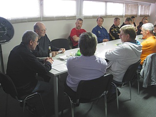 Aufgrund des bereits angesprochenen mäßigen Wetters wurde eher in den Räumlichkeiten des Clubheims als unter freiem Himmel gefeiert. Dies tat aber den Benzingesprächen und dem Schwelgen in Erinnerungen vergangener Clubgeschichte keinen Abbruch und der Nachmittag verging wie im Flug.