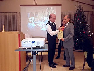 Und was war der Grund für diese Zeitreise? Es befanden sich Clubmitglieder unter den Anwesenden, die dem Club seit 20 Jahren die Treue halten und diese wurden natürlich geehrt. Da Hugo Schneider Moderator und Jubilar in Personalunion war, wurde er vom Ersten Vorsitzenden, Günther Losacker, geehrt. Uwe Zerrweck wurde vom Ersten Vorsitzenden zusätzlich für seine Vorstandsarbeit seit dem Jahr 2006 geehrt.