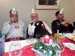 Natürlich fanden die Feierlichkeiten wieder in Oberaula, in unserem Stammhotel statt. Der festlich geschmückte Raum war mit langen Festtafeln bestuhlt. Ellen und Hugo Schneider hatten liebevoll gestaltete Platzkärtchen vorbereitet und wie immer, fand auch jedes Mitglied ein kleines Geschenk an seinem Sitzplatz vor.