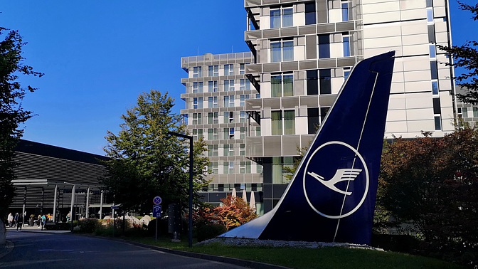 Am frühen Nachmittag erreichte ich unser Ziel in den Hügeln über Seeheim. Die markante „Lufthansa-Finne“ ragte stolz aus der Rasenfläche vor dem weitläufigen Hotel-Komplex. Während der Suche nach einem adäquaten Parkplatz traf ich unseren 1. Vorsitzenden, der ebenfalls auf der Suche nach einem geeigneten Stellplatz war.