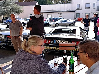 Auf der großen Terrasse mit Blick ins Tal genossen wir unseren ersten Café und man versprach uns, dass die Fahrzeuge nicht abgeschleppt würden. Mittlerweile gesellte sich auch der 3. Vorsitzende hinzu und wir machten Pläne für den verbleibenden Nachmittag, denn es galt einige Programmpunkte des Events zu aktualisieren. Man muss eben flexibel sein in der heutigen Zeit.
