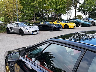 Während meiner Anreise zum Event wollte ich - nichts Böses ahnend - das Etablissement schon mal in Augenschein nehmen und strauchelte bereits am Ortsausgang mit dem Evora an einer quer zur Straße verlaufenden Regenrinne aus Kopfsteinpflaster. Ich schilderte also der Gruppe meine gemachten Erfahrungen und für mich war klar, dass ich eine Alternative finden werde. Doch die Windbeutel waren zu verlockend und so machten sich einige von uns zu Fuß auf den 1.5 Kilometer langen Weg durch das Wäldchen. Andere muteten ihren Fahrzeugen die Offroad-Einlage zu. Das Café empfing seine Gäste mit dem Charm der sechziger Jahre, aber die Riesenwindbeutel hielten, was sie versprachen.