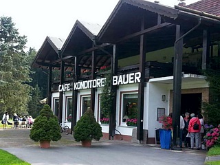 Die Organisatoren meinten es gut mit uns und entdeckten nach intensiver Recherche im World-Wide-Web das Cafe Bauer in Grasellenbach. Das Lokal lockte mit Riesenwindbeuteln. Da konnten unsere Leckermäuler nicht widerstehen. Zu dumm nur, dass die Gaststätte „in the middle of nowhere“ angesiedelt ist und nur über teilweise unbefestigte Waldwege zu erreichen war.