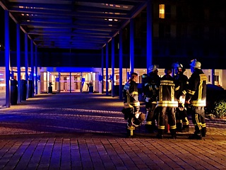Plötzlich heulten Alarmsirenen und das Personal forderte uns freundlich, aber mit Nachdruck auf, die Räumlichkeiten des Hotels zu verlassen. Feueralarm! Alsbald rückte die Feuerwehr mit mehreren Mannschaftswagen an. Feuerwehrleute stürmten im Vollschutzanzug ins Hotel und suchten nach der Ursache des Alarms.