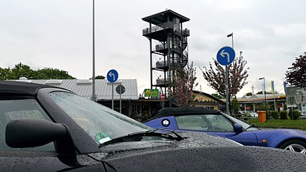 So ziemlich der gesamte sogenannte „harte Kern“ der LCD-Mitglieder traf sich ab 10:00 Uhr auf der Autobahnraststätte Taunusblick. Die Raststätte mit dem markanten Aussichtsturm liegt an der A5 nahe Eschborn.
