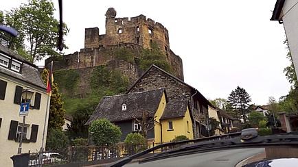 Das Wetter war zunächst noch regnerisch. Aber als wir gegen Mittag zu unserer Ausfahrt aufbrachen, waren die Straßen zwar noch nass, aber es hatte mittlerweile aufgehört zu regnen. Über herrliche Landstraßen näherten wir uns dem Zwischenziel in Balduinstein.