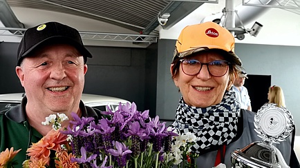 Siegfried Herrmann veröffentlichte sein Buch und ehrte die Fotografin, Elfi Jung, die ihm mit Rat und Tat zur Seite stand, mit einem Pokal und einem großen Blumenstrauß. Elfi stellt übrigens auch regelmäßig faszinierende Fotos für unseren LCD-Newsletter zur Verfügung. Das Titelbild dieses Berichts stammt übrigens auch aus ihrer Kamera. – Liebe Elfi, an dieser Stelle geht auch ein großes DANKESCHÖN für deine wertvolle Unterstützung von uns an dich. – Für perfekte Bilder braucht man das passende Equipment, die richtige Akkreditierung und vor allen Dingen das „Know-how“ und Elfi hat reichlich davon.