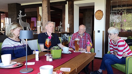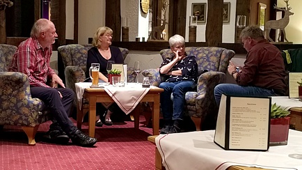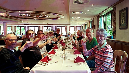 Spätestens zum Begrüßungscocktail und zum Abendessen sind in der Regel alle Teilnehmer eingetroffen. Es gibt leider auch immer mal wieder bedauernswerte Einzelschicksale, die sich nicht rechtzeitig von der Arbeit losreisen können oder im Stau stehen. So erging es diesmal Hartmut Lindloff. Aber auch er musste nicht hungrig zu Bett gehen. Und nach der einen oder anderen „Kaltschale“ in unserer „Lümmelecke“, war es Zeit sich in die Gemächer zurückzuziehen, denn am folgenden Tag wartete ein volles Programm auf uns.