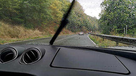 Der Parkplatz lag etwas Abseits. Dies bot uns die Gelegenheit vor der Weiterfahrt einen kleinen Verdauungsspaziergang entlang des Sees zu unternehmen. Während der Fahrt zur nächsten Location stellte sich endgültig heraus, dass der diesjährige September eine seriöse Identitätskriese hatte und lieber ein April sein wollte. Es schüttete wie aus Eimern.