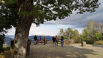 Als wir unseren nächsten Aufenthaltspunkt erreichten, schien schon wieder die Sonne, obwohl drohend schwarze Wolken allgegenwärtig waren. Der Aussichtsturm Hohe Bracht ist ein beliebter Anlaufpunkt für Ausflügler. Aufgrund des wechselhaften Wetters hatten wir das Areal fast für uns alleine. Es gab durchaus die Möglichkeit dort einzukehren, aber das Mittagessen war noch nicht verdaut. Also beschlossen wir, einfach die herrliche Aussicht zu genießen und zu einem späteren Zeitpunkt Café zu trinken.