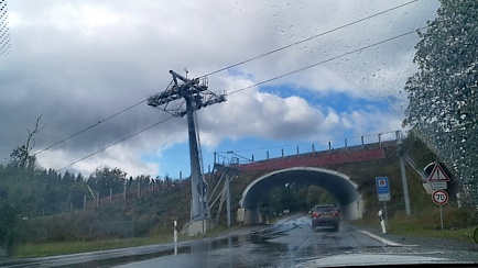 Das Wetter war nicht wirklich besser, als am Vortag. Nach knapp 40 Kilometer Fahrstrecke tauchte am Horizont die Silhouette der bekannten St.-Georg-Schanze auf. Die Ski-Sprungschanze und die Bobbahn in der Veltins-Eisarena sind quasi die Erkennungsmerkmale des Wintersportortes.
