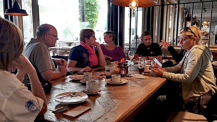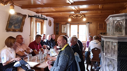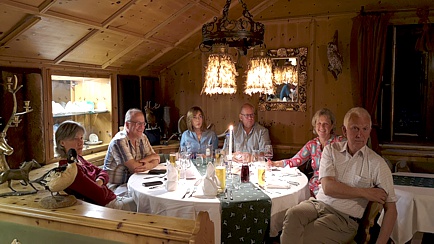 Zunächst genossen die Neuankömmlinge am frühen Nachmittag den Begrüßungs-Drink und freuten sich auf der sonnendurchfluteten Terrasse des Hotels über Café und Kuchen. Später begrüßte der Kurdirektor und Event-Organisator, Thomas Jahn, die Teilnehmer im Restaurant des Schmelmer Hofs und umriss die Historie des Hotels. Noch bevor das Abendessen in der Zirbel-Stube zelebriert wurde, besprachen wir das geplante Programm für die kommenden Tage. Unnötig zu erwähnen, dass der Abend an der Hotel-Bar seinen Ausklang fand.