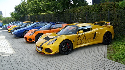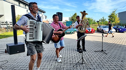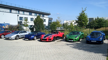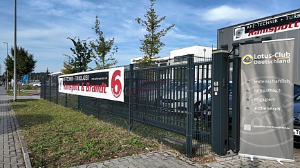 Die auf dem Firmengelände geparkten Lotus-Fahrzeuge boten eine schöne Kulisse, denn gefeiert wurde nicht nur in den Räumlichkeiten, sondern auch im Freien, wo Stehtische zum Verweilen einluden.
