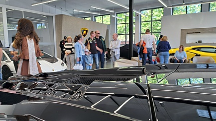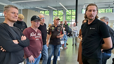 Zunächst sollte aber in den Räumen der Dörr-Group die Begrüßung und eine anschließende Führung stattfinden. Nun verfügt aber die Dörr-Group auf dem weitläufigen Gelände der Klassikstadt über diverse Räumlichkeiten. Also stellte sich die Frage, wo genau die Begrüßung stattfinden sollte. Alsbald stellte sich heraus, dass man uns bei Lamborghini auf der gegenüberliegenden Straßenseite erwartete.