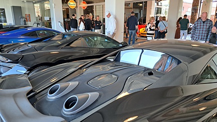 Die dort ansässige Dörr-Group repräsentiert edle Automarken wie Lamborghini, McLaren, Bugatti und weitere Super- und Hypercars. Aufgrund der freundschaftlichen Verbindung zu Rainer Dörr, der auch Mitglied des LCD ist, kam das Treffen zustande. Wir hatten gute Erinnerungen an diese Location, denn wir waren vor einigen Jahren hier schonmal zu Gast. Diesmal war Rainer Dörr allerdings nicht persönlich zugegen, denn die Dörr-Group fährt heuer wieder mit zwei McLaren 720S GT3 Evo in der DTM. Der erste Lauf in Oschersleben startete zeitgleich mit dem LCD-Frühjahrstreffen. Sein Sohn, Ben Dörr und der ehemalige Formel 1 Pilot, Timo Glock, sind die DTM-Piloten. Da musste Rainer selbstverständlich persönlich in der McLaren-Box anwesend sein.