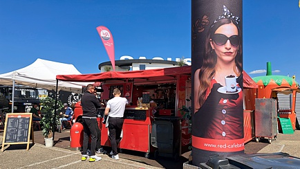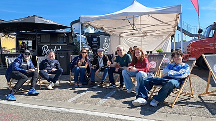 Zu unsrer großen Freude bot die Red-Cafebar mit ihrer netten Besatzung wieder diverse Kaffeespezialitäten oder auch mal einen kühlen „Schampus“ an. Es ist bereits eine liebgewordene Tradition, dass sich die Raders und meinereiner dort auf ein Schlückchen niederlassen. Heuer erweiterten wir mit Wolfgang Henseler und Uli Ehret die Runde.