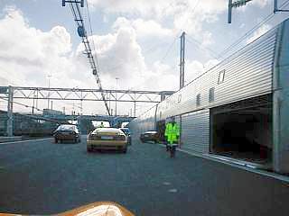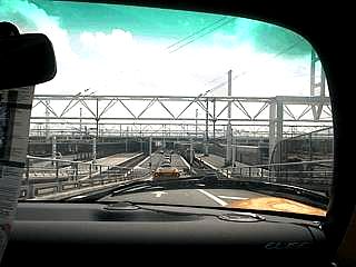 Direkt von der Autobahn, zur Einfahrt auf das Eurotunnelgelände zum Einchecken für die Tunneldurchfahrt.