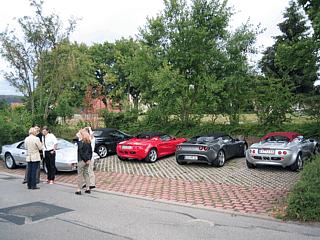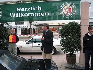 Wohlgestärkt trat man die Weiterfahrt durch den Nordschwarzwald an. Das Roadbook führte über Seewald, den Stausee Erzgrube und Dornstetten zum Promenadenplatz des Kurhauses in Freudenstadt. Hier wurden die Teilnehmer vom Kurdirektor von Freudenstadt begrüßt. Auch der Sponsor Alpirsbacher Klosterbräu hatte einen Getränkewagen aufgestellt.