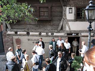 Nach dem Stadtrundgang gab es eine kleine Stärkung im Gasthaus "Bäck-Schwarz", dem ältesten Haus in der Altstadt, Baujahr 1459, mit alemannischem Fachwerk und Bohlenständerwänden.