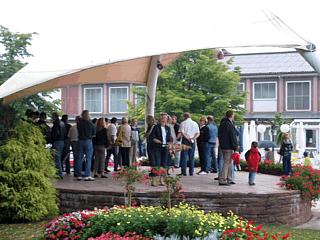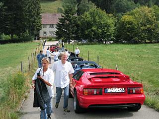 Nach einer kurzen Regenpause wurde aber auch der Cocktailempfang im Kurpark von Schömberg von einem längerem Schauer begleitet und mußte so im Kurhaus stattfinden. Doch zum Gruppenfoto hatte Petrus ein Einsehen und das Foto mit allen Teilnehmern konnte auf der Kurparkbühne geschossen werden.