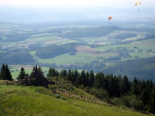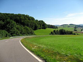 Langsam wurde es Zeit, den nächsten Programmpunkt anzusteuern. Über sanfte Hügel und durch malerische Senken schlängelte sich der Weg über herrliche Landstraßen in Richtung Wasserkuppe. |