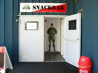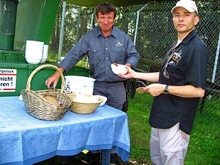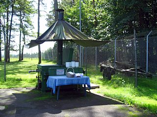 Nach so viel Geschichte „zum Anfassen“ hatte man sich eine deftige Mahlzeit in Form eines Erbseneintopfes redlich verdient. Den nahm man in der Kantine des Point Alpha, im „Black Horse Inn“, zu sich. Das schmackhafte Mittagessen wurde natürlich stilecht in der Gulaschkanone zubereitet. |