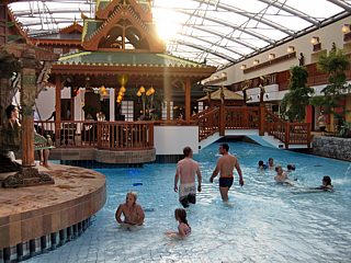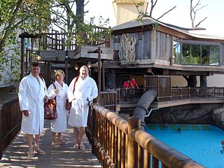 Der verbleibende Nachmittag stand zur freien Verfügung. Nicht wenige fuhren gleich zurück ins Hotel, um nochmals die SIEBEN WELTEN zu genießen. Die Straßen dorthin boten immer wieder einen tollen Panoramablick. Am Horizont konnte man nochmal das Radom ausmachen. Wenig später wurden die Fahrzeuge auf dem Hotelparkplatz abgestellt und danach verweilte man in den verschiedenen Schwimmbecken, der Poolbar und in der Sauna.