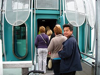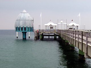 Vormittags wurden die Event-Teilnehmer in zwei Gruppen aufgeteilt, denn eine Tauchfahrt mit der Grömitzer Tauchgondel stand auf dem Programm, und da passten nicht alle gleichzeitig hinein. Hier soll aber kein falscher Eindruck entstehen. Die Gondel ist sehr komfortabel und geräumig, so dass auch Personen mit Hang zur Klaustrophobie ohne weiteres mitkommen konnten. Während des Tauchgangs erfuhr man von der zweiköpfigen Besatzung allerhand Wissenswertes über die Unterwasserwelt der Ostsee und bekam auch noch einen Lehrfilm in 3D-Technik gezeigt.
