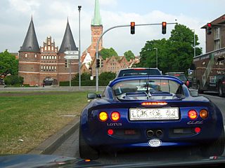 Gegen 17:00 Uhr vernahmen die Grömitzer Feriengäste ungewöhnliche Geräusche in dem sonst so ruhigen Ferienort. Die Event-Teilnehmer des Lotus-Clubs zündeten nämlich die Motoren ihrer Fahrzeuge in der hoteleigenen Tiefgarage. Die Feriengäste nahmen die Abwechslung dankbar an und beobachteten wie ein Lotus nach dem anderen in die Startaufstellung rollte. Alsbald setzte sich der Tross von 21 Fahrzeugen, angeführt vom blauen Elise des Event-Organisators, in Bewegung und begab sich entlang der Strandroute nach Lübeck.